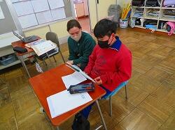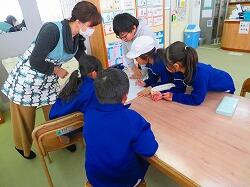 友達に質問をするのも練習です。がんばって取り組んでいました。