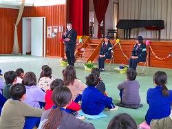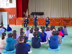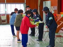 今日は、いつも子供たちの安全を見守ってくださるお巡りさんや交通指導員さん、スクールガードさんに感謝する会をしました。
