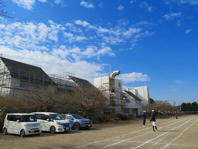 足場の片づけが進み、きれいになった校舎が見えてきました。