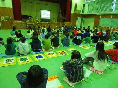 どの子も読み聞かせに集中して聞く様子が伺えます。