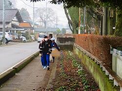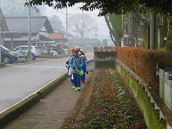 地域のゴミ回収に来ている皆さんにも元気に挨拶をする班がいました。