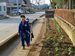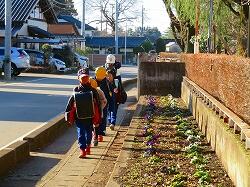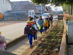 新登校班での通学、二日目となります。どの班も一列できちんと歩くことができていました。