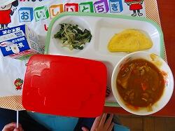 オムレツえのたま洋風ソース、磯辺和え、おいしい野菜カレーでした。