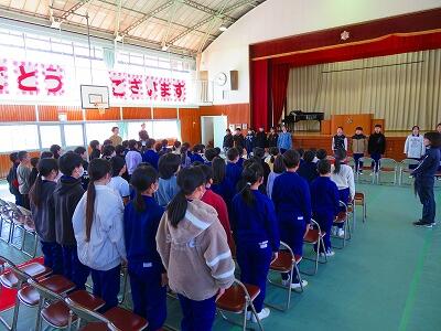 今までの小学校生活を振り返る劇や代表児童の温かな作文、そして、みんなで声を合わせて「キセキ」を歌ってくれました。