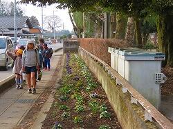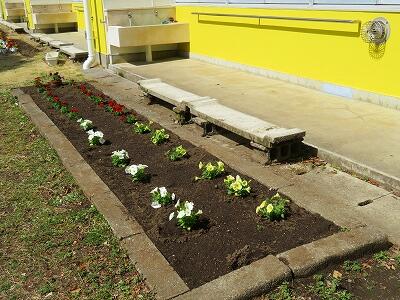 外壁工事が終わったため、1・2年、あおぞら学級の前の花壇に花を植えました。