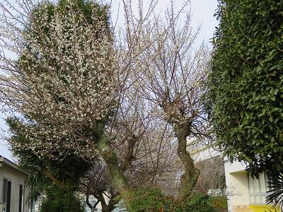 学校の敷地内にある梅の木が、すべて満開となりました。