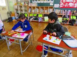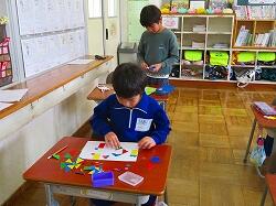 1年生は、算数で色板を使った形づくりの学習をしました。