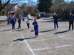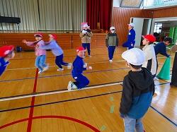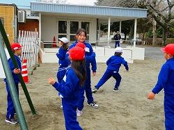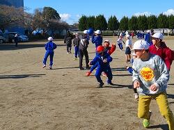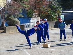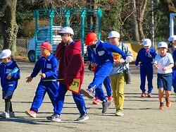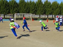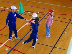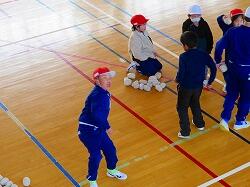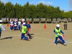 投力を伸ばすために、実施しました。子供たちは、少しでも早くボールを取って、友達に投げようと頑張っていました。