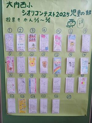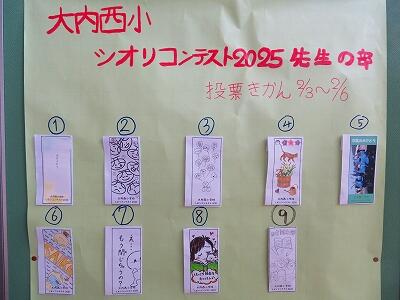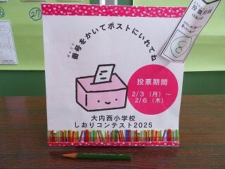 今、図書委員会の企画で、大内西小学校しおりコンテストを実施しています。