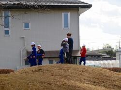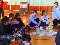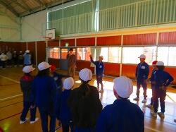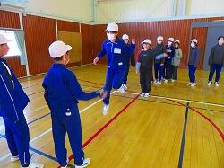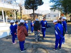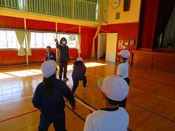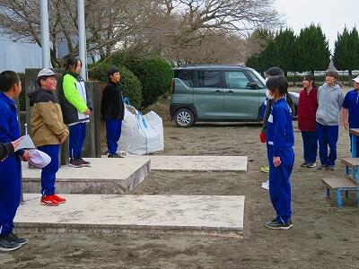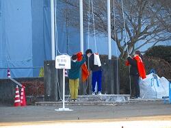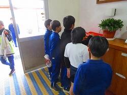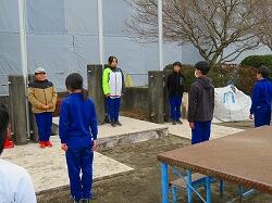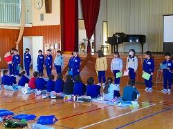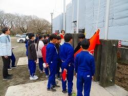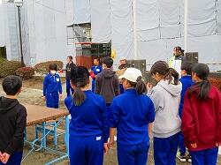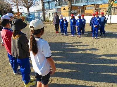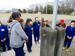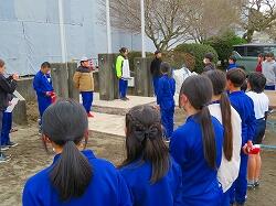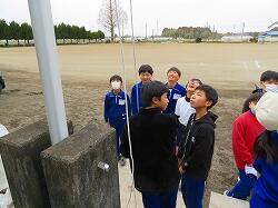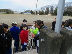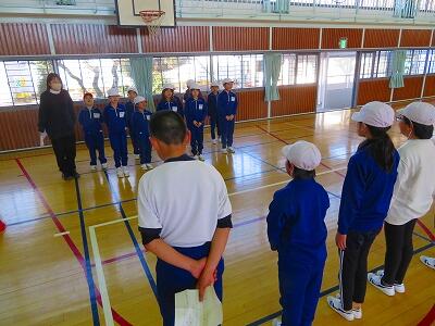 引継ぎ式の後、旗当番の仕事について、6年生から教えてもらいました。