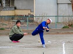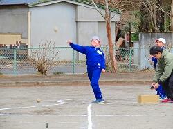 昼休み、1・2年生の投力王のチャレンジがありました。