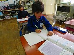 4年生は、書写でひらがなの「わざ」に取り組みました。
