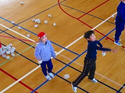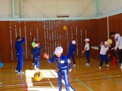 体力ジャンプアップで、「ドッジボールラリー」に挑戦しました。