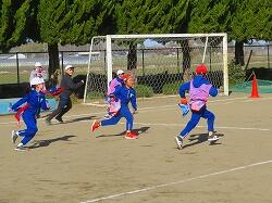 いろいろな学年が混ざってサッカーをしている子たちがいました。