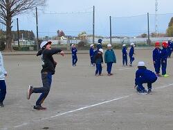 最後に先生が投げると、たくさん遠くまで投げることができるので「どうしたらそんなに投げることができるのですか?」と質問している子がいました。