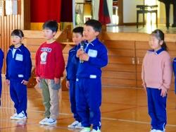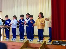 一年間お世話になった6年生に、みんなから感謝の言葉を伝えている場面がありました。