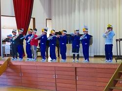 今日は、5年生と6年生で、旗当番引継ぎ式をしました。