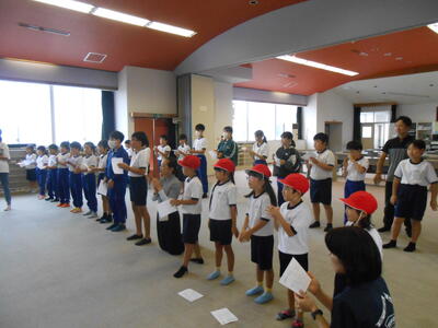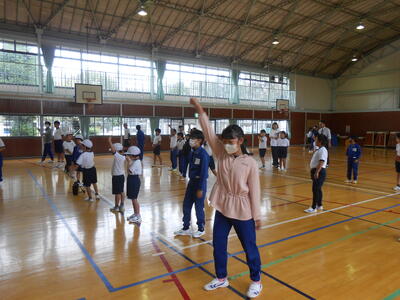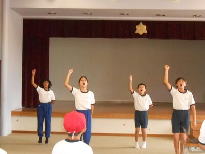 今日の全体練習は、開・閉会式の練習でした。代表児童の進行も慣れ、堂々とできるようになってきました。