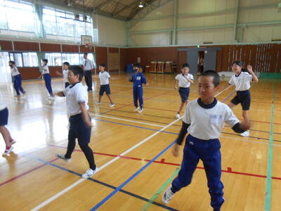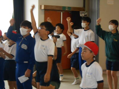 今日の朝は、応援合戦第2章の練習がありました。応援団の指示に従ってどの子も一生懸命、力を合わせて頑張っています。