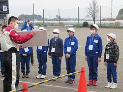 歩いた後、指導員さんからのお話を聞きました。だいたい上手に歩いていますが、道路を渡るときは、班長さんの号令に従ってしっかり見ること、渡るのを待つときに前に出すぎないこと、号令やあいさつは大きい声でしましょうというお話を聞きました。明日からは本番です。今までの班長さんは一度も事故になりませんでした。次の班長さんもその伝統を続けてほしいと思います。