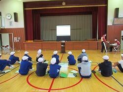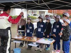 体験の後は体育館で、自動車と環境のことを勉強しました。カーボンニュートラルなどという言葉について学習していました。クイズを入れながらわかりやすく教えてくれました。最後にお礼を言って終わりになりました。学校での楽しい社会科見学でした。オンラインの社会科見学はこれからも予定しています。