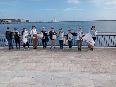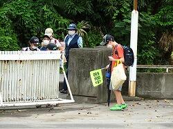 さて、午後から「ゴミゼロ運動」の開始です。みんなゴミ袋や軍手を用意して並びました。ゴミばさみは学校で用意してあります。保護者のボランティアの方と一緒に、3つのコースに分かれて出発しました。