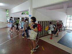 今日から3日間サマースクールを実施しています。参加する児童が元気に来校して、学習に励んでいました。