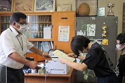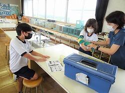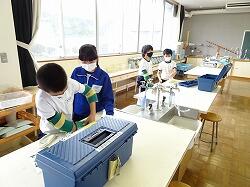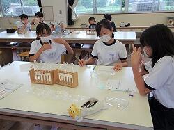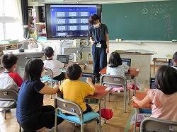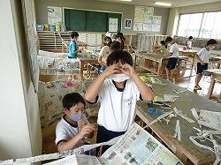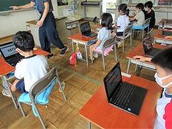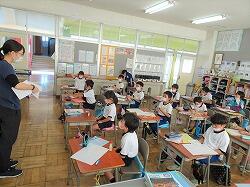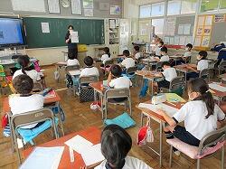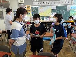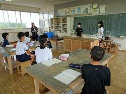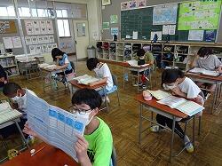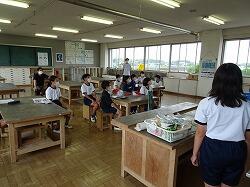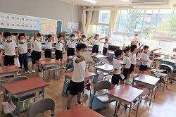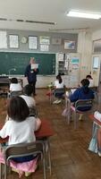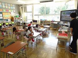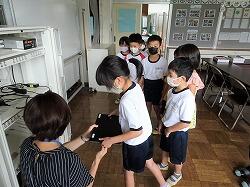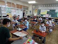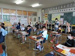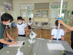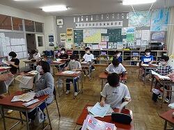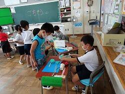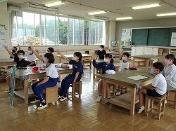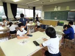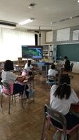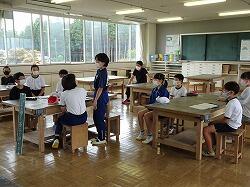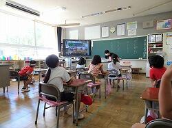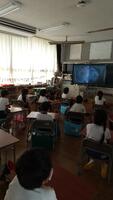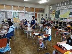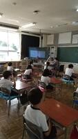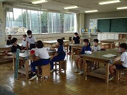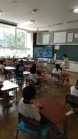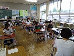 ちょうど始まったころから1時間ぐらい、電気設備点検のため1時間ほどの停電があり、エアコンが止まってしまいましたが、児童は静かに学習に取り組んでいました。でも、エアコンのありがたさは感じていたようです。