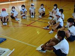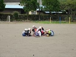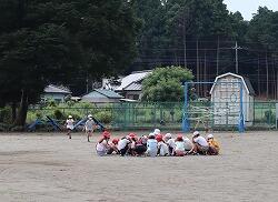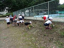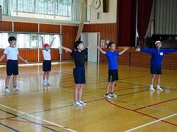 いつものように、班長の6年生の後をついて活動場所に行き、準備運動をして開始です。