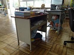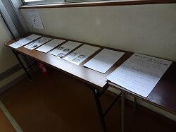 夏休みもいよいよ大詰めになってきました。PTA親子奉仕作業は延期になってしまったので、その時提出するはずだった宿題は、12日のメールにあったように、23日(火)~29日(月)の間に、職員玄関に持ってきてください。平日の8:00~16:00までの間でお願いします。下の写真のように机を並べて、宿題別に分けてあるので、その上に提出してください。よろしくお願いします。