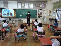 終業式が終わった後は、児童指導担当の先生の「夏休みの過ごし方」のお話がありました。交通事故や水難事故・SNSでの問題など夏休みに危険が多くなることについて確認しました。