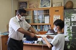 担任から賞賛や励ましの言葉を伝えながら渡されていたようです。通知表を見て、自分がさらに頑張る必要のあるところを見つけて、夏休みに復習したりしてほしいと思います。所見については、個人懇談の際に伝えます。保護者の方はその時にお聞きいただくようよろしくお願いします。