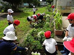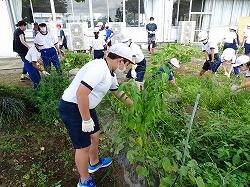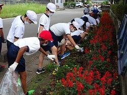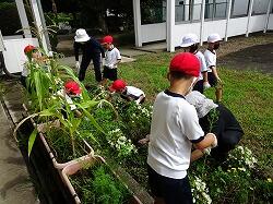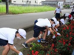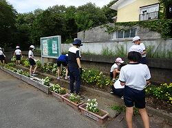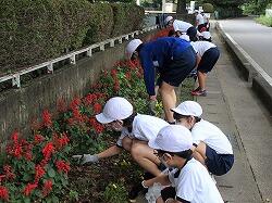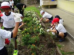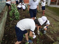 このところ行事も立て込んでいて、金曜日の外の環境整備ができていませんでしたが、今日は久しぶりに学年花壇の手入れをしました。来週、新しい花苗が来るので、今までのお花を抜いて、除草をしました。