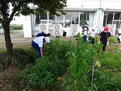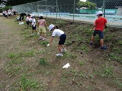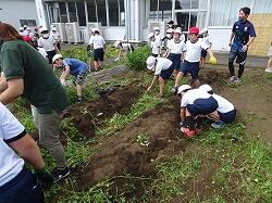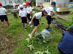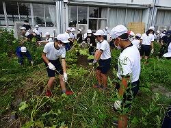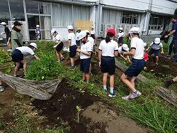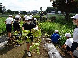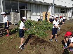 1・2年生は花壇の隣の農園もきれいにしていました。今年はずいぶん農作物がとれたようです。