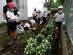3年生から6年生は担当の花壇をきれいにしました。4年生で早く終わった児童は、プランターのお花も片づけてくれていました。