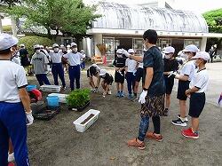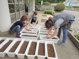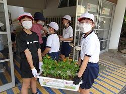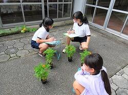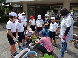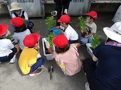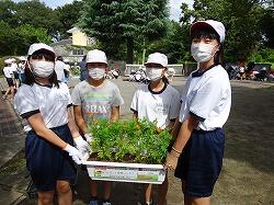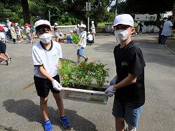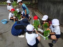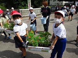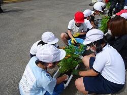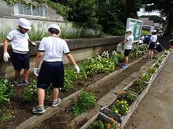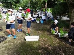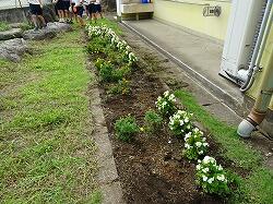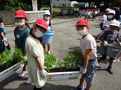 植え終わったら水をかけていました。どの学年もきれいに植えることができました。