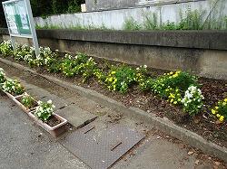 今日の清掃の時間は花壇にパンジーの苗とチューリップの球根を植えました。