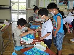 2年生は国語の時間でしたが、「クイズカード」を作っていました。動物について調べて、クイズを作り、絵なども入れて作るそうです。「1年生に出してあげたい」と言っていました。もう少しで出来上がりそうです。