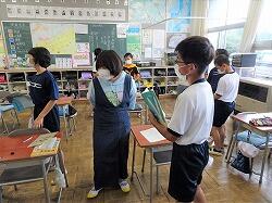給食・清掃のあとの5校時は全クラス学活です。夏休みのお話や通知表を渡されました。