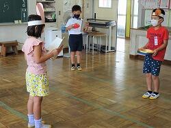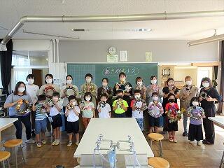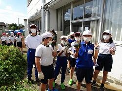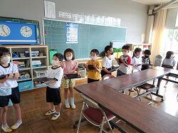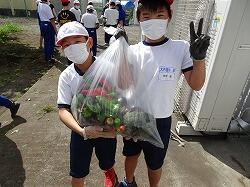 終わると農園にまっしぐらに行く児童がいました。収穫のよろこびに目覚めたのでしょうか。枝豆やミニトマトをとっていました。今日は最終日なので、上履きや防災頭巾を持って帰りました。残りの夏休み感染症やけがに注意して安全に過ごしてほしいと思います。