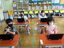 やはり、終業式と同じようにリモートでの実施です。校長からは、夏休みに寄付してもらった農具の紹介や、戦争の話、2学期も「さいこうのこ」で頑張ろうという話をしました。2年生と5年生の代表が夏休みの生活の様子や、2学期の目標を発表していました。「持久走大会で頑張りたい」と言っていました。今から練習ですね。
