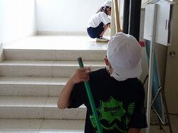 3年生も分担してやっていました。ごみ箱の中もきれいに洗っていました。