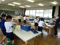 5年生は、午後、教室での社会科見学です。バンダイの会社の様子を知りました。5校時目は、バンダイでプラモデルをどのように作っているかを電子黒板で見ました。プラモデルを片付ける際のリサイクルの様子も学習しました。6校時は、いよいよ、リサイクルでできたプラモデルの制作です。なかなか本格的な可動部分の多いフラモデルで、時間内にできるかなと心配しましたが、みんな大体作ることができたようです。