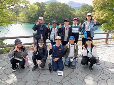 今日は北陵校との農業体験です。雨が降らず実施となりました。ボランティアの方もたくさん来てくださったので、挨拶して、元気に出発です。
