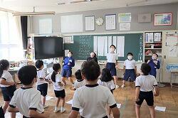 歌に合わせて手話をやったり、振り付けを入れたりして発表していました。ここで会場の入れ替えです。今度は1~3年生が教室で見ます。会場には4~6年生が入ります。密にならないように保護者の方にも入れ替わってもらいました。