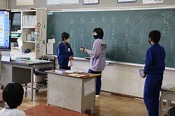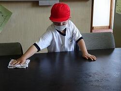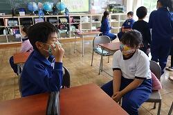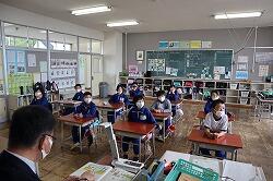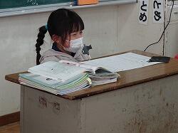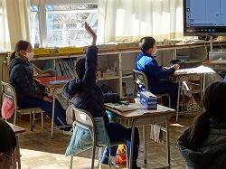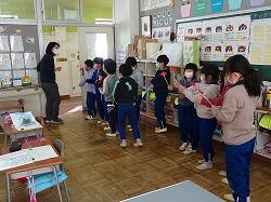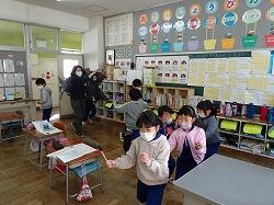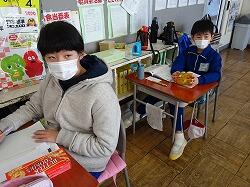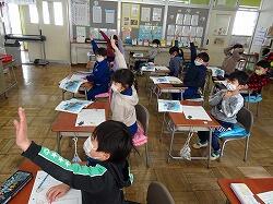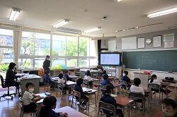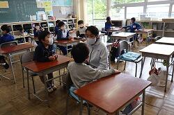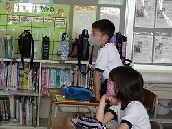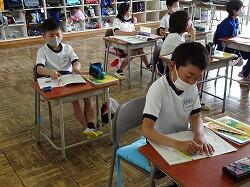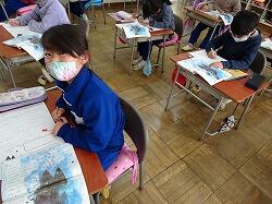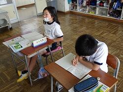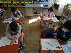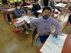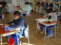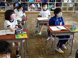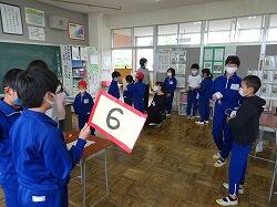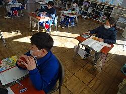 途中、担任の先生から「ちょっと密だね。」と言われると、「そうだ、密だ。」と言って席を離していました。素直な子どもたちです。