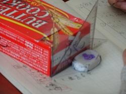まず、プラ版に絵を書いて、それを使って何か小物を作って贈るようです。一生懸命絵を書いていました。
