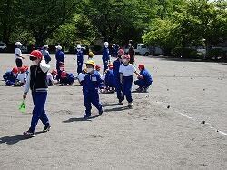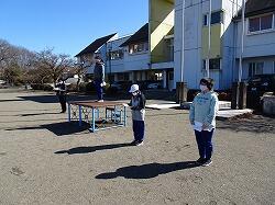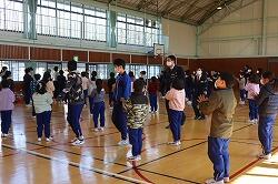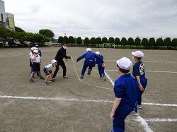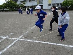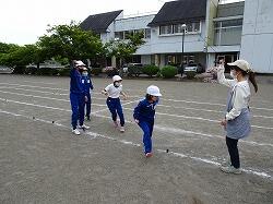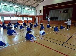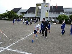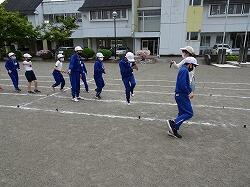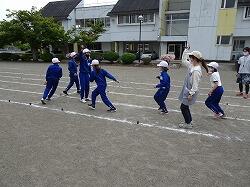 2グループでやったのですが、だんだん入るタイミングが上手になります。ただ、ついおそるおそる入ったり、抜けるのが遅くなると引っかかってしまいます。片方のグループは間をあけずに上手にやっていました。終わるときには、「もう少しやりたい」という声も聞こえました。