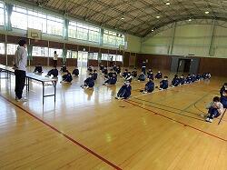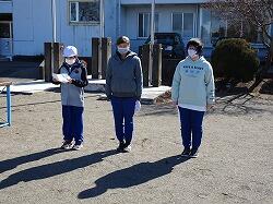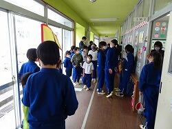 今日の話は、「交通安全はいつも100点で」ということと、「3月6日は、創立記念日」という2つです。どの学年もしっかり聞いていました。