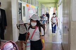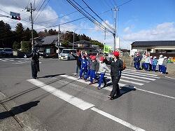 学校に戻って駐在さんのお話を聞きました。今日のわたり方を登下校の時だけでなく、遊びに行くときも忘れないで、特に自転車に乗っているとき交通事故に十分注意してくださいという話がありました。最後に、指導してくれた市の交通教育指導員さんや交通指導員さん・下籠谷の駐在さんにお礼を言いました。保護者の方も交通安全の声かけをよろしくお願いします。